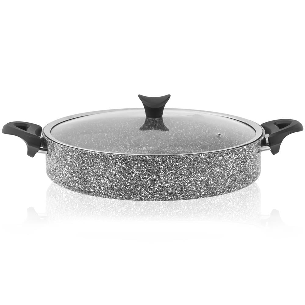 Mutfakta rahat kullanım sağlayan granit basık tencere 26cm, geniş yüzeyi sayesinde yemeklerinizi homojen şekilde pişirmenize yardımcı olur. Özellikle et soteleme, sebze yemekleri ve soslu tarifler için idealdir.