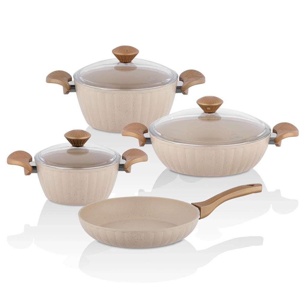 taç dilim granit tencere set, farklı boylardaki tencereleri ile her yemeğe uygun kullanım imkânı sunar. granit kaplaması sayesinde yapışmazlık sağlar ve kolay temizlenir. setin modern tasarımı ve dayanıklı yapısı uzun yıllar sorunsuz kullanım sunar. yemeklerin doğal lezzetini koruyarak sağlıklı pişirme sağlar. detaylı bilgiye Depo61.com üzerinden ulaşabilirsiniz.